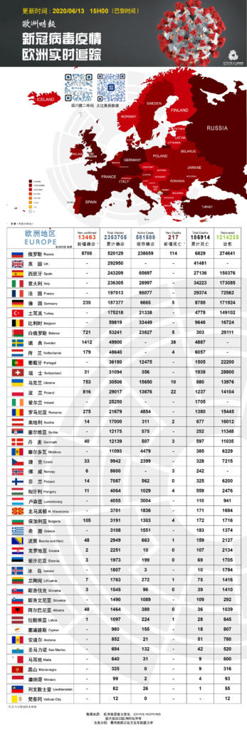 新冠病毒疫情欧洲实时追踪