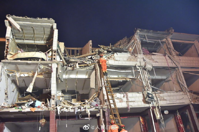 救援人員在現場利用雲梯車登上受損建築、利用大型機械起吊移開建築構件,打開救援通道,截至21時03分,共救出13人。