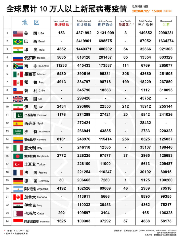 新冠病毒疫情欧洲实时追踪