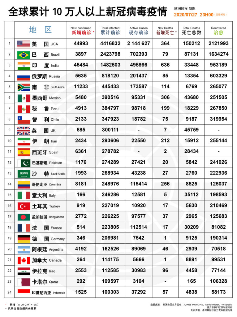 新冠病毒疫情欧洲实时追踪