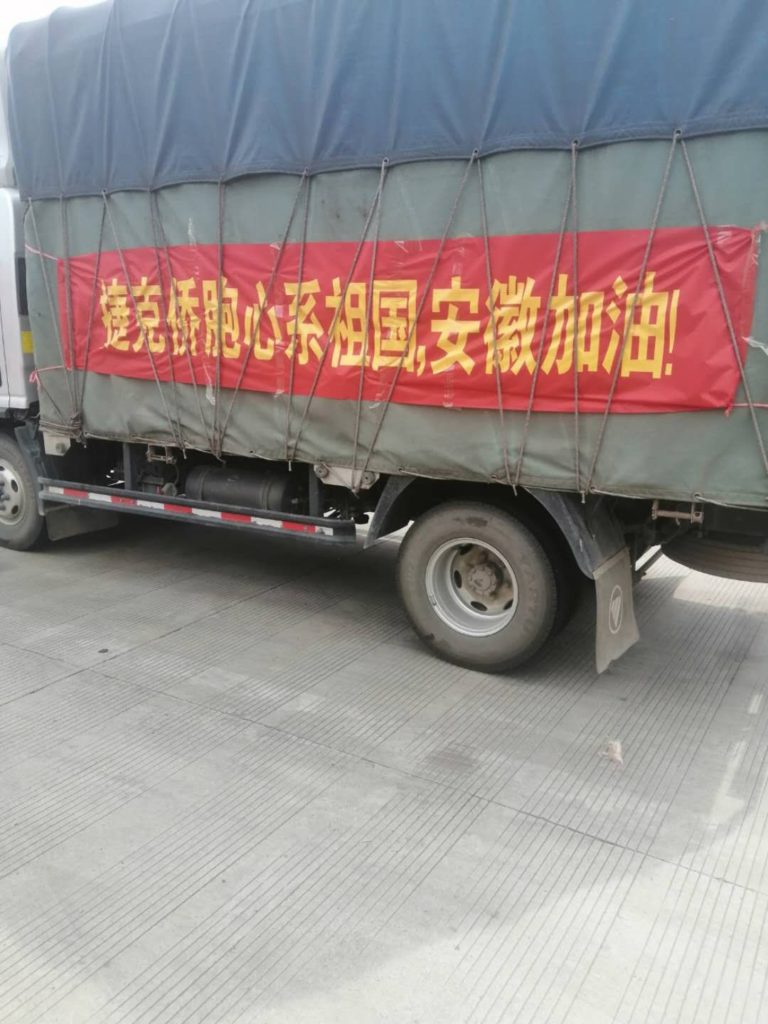 这批物资-258箱军用压缩饼干,由捷克中欧工商联合会成员捐资购买,委托商会国内代表包增兵先生带领志愿者团队于今天送达合肥、池州两地。