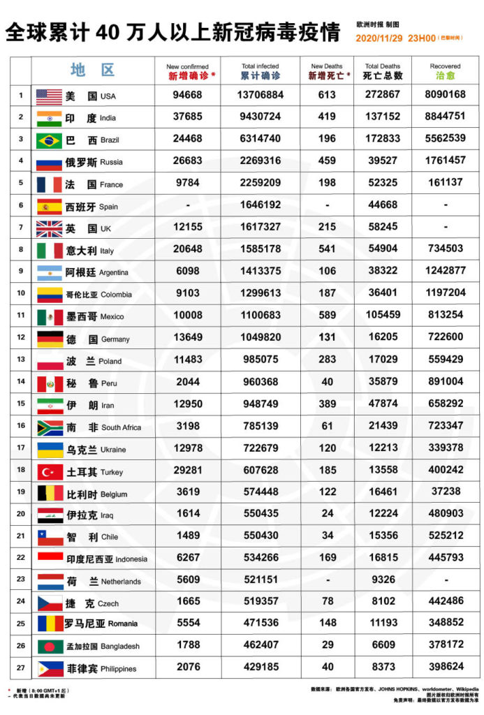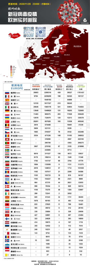 新冠病毒疫情欧洲实时追踪