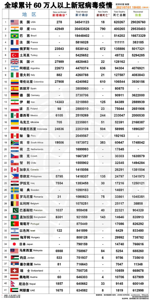 欧洲时报“欧美新型冠状病毒肺炎疫情播报” 新增病患56919(捷克151)累计病患53559297(捷克1667435)新增病亡907(捷克1)总计病亡1152811(捷克30304)病愈32941124(捷克1635643) Categorised in: 今日世界, 今日捷克, 今日欧洲, 抗击新冠病毒