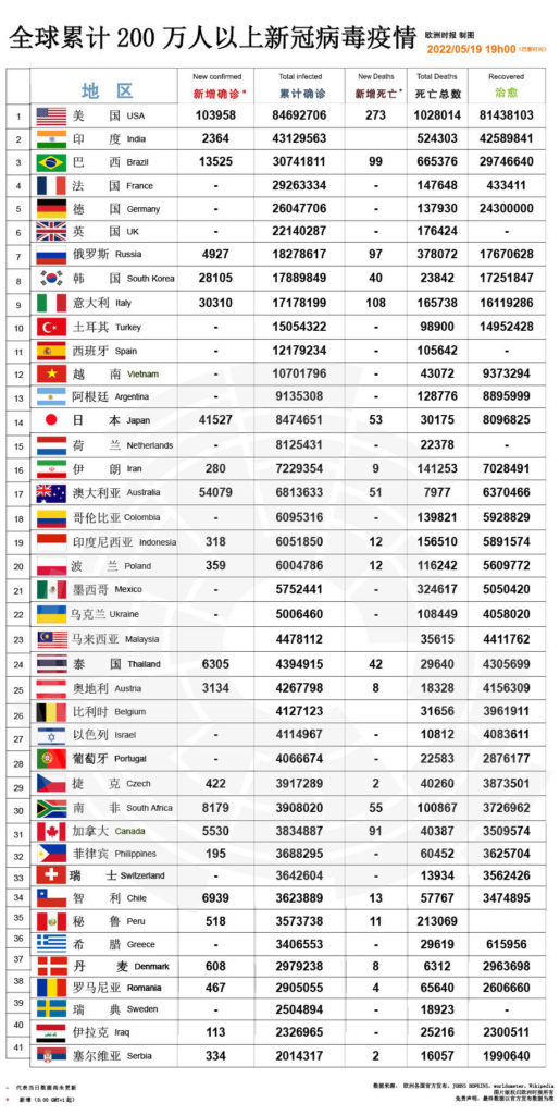 累计病患210418973(捷克3917289)