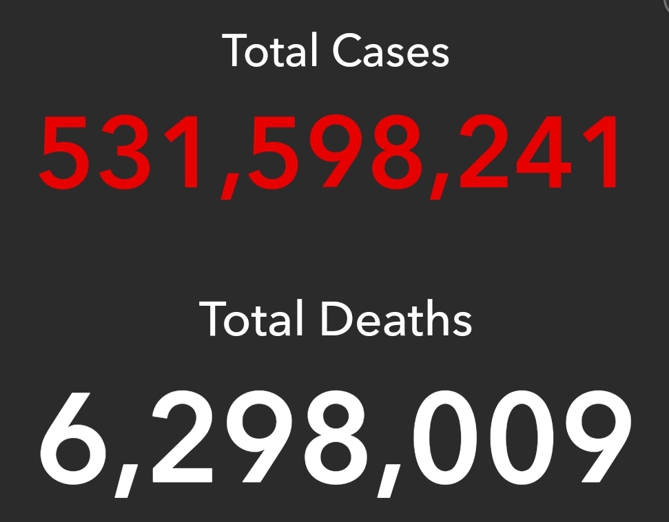 全球病患5亿3159万,病亡629.8万;