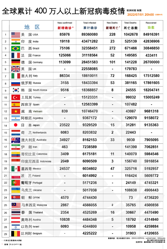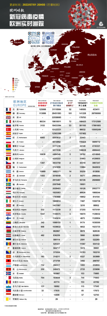 欧洲时报“欧美新型冠状病毒肺炎疫情播报”