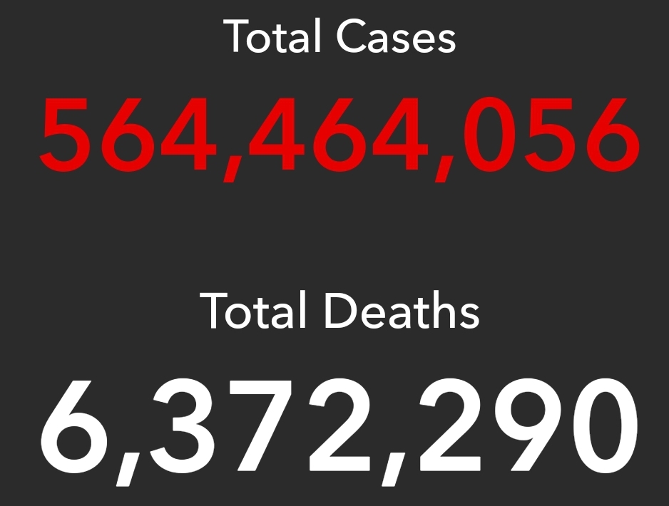全球病患5亿6446万,病亡637.2万;