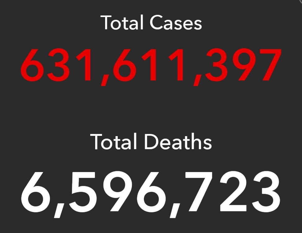 全球病患6亿3161万,病亡659.6万;