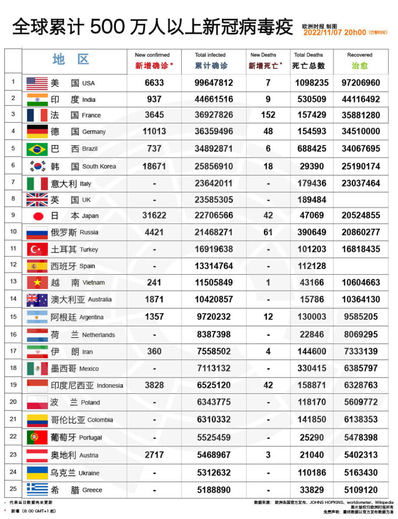 新增病患23644(捷克106)累计病患252124540(捷克4161797)新增病亡302(捷克6)总计病亡2038793(捷克41660)病愈205451786(捷克4116248) Categorised in: 今日世界, 今日捷克, 今日欧洲, 健康, 抗击新冠病毒