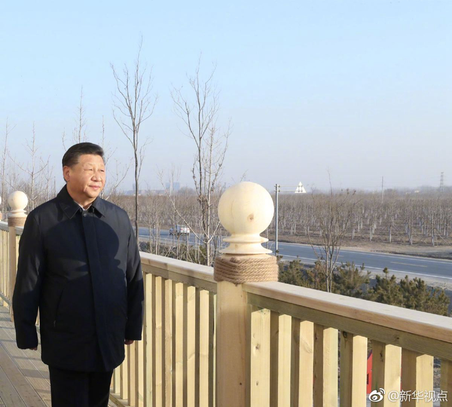 图:习近平总书记昨日登上雄安新区大清河林区秀林驿站平台远眺林区。
